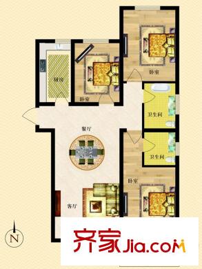 悦正园1号楼A1户型 3室2厅2卫1厨