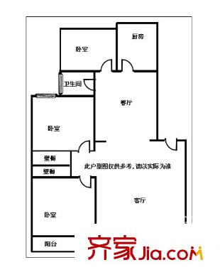 康欣园北区户型图三室两厅 3室2厅1卫1厨