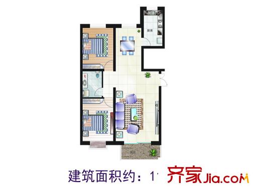 博鑫青年城116.00㎡两室两厅一卫户型2室2厅1卫
