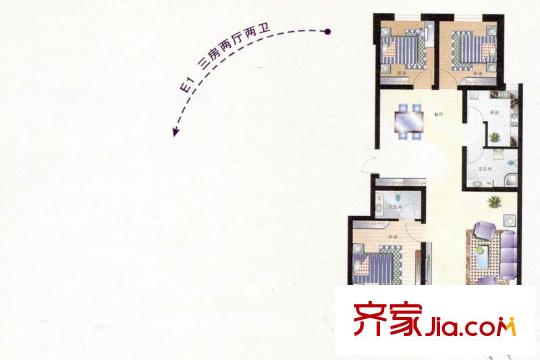 博鑫青年城E3户型 3室2厅2卫1厨