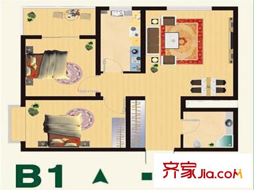 博鑫青年城已售完B1户型 2室2厅1卫1厨