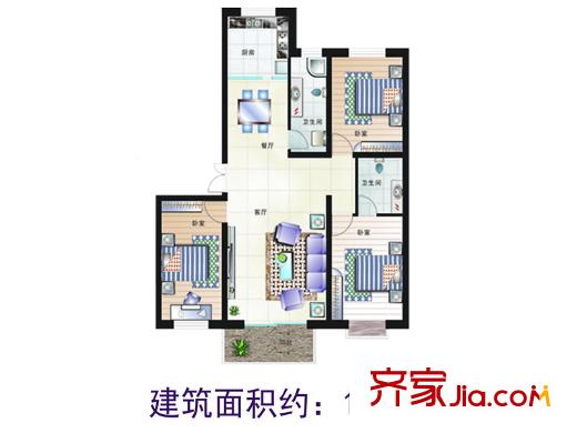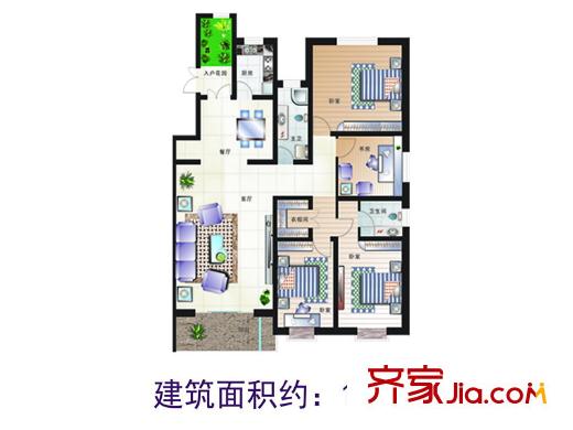 博鑫青年城三室户型 3室2厅1卫1厨