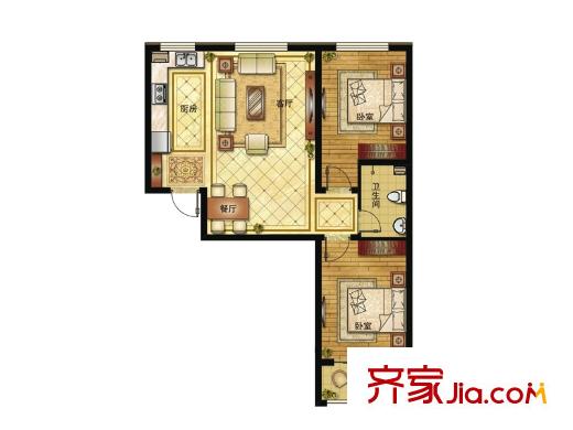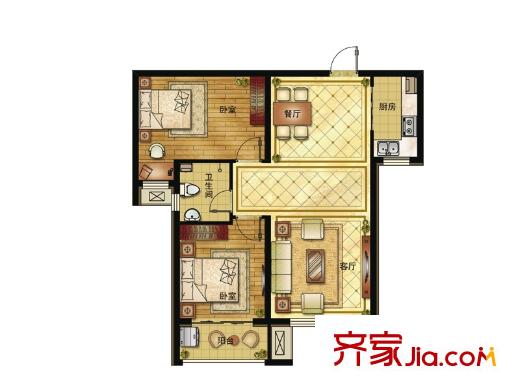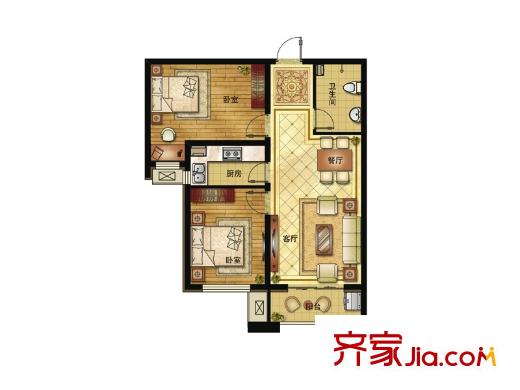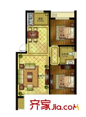 清山公爵城9号楼A户型 2室2厅1卫1厨