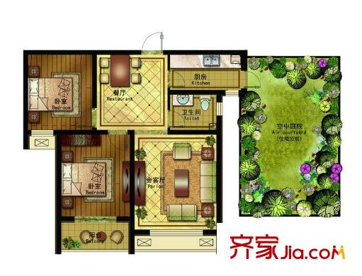 清山公爵城(I1)J户型 2室2厅1卫1厨