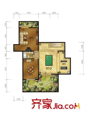 清山公爵城10#H1-负1层-G户型 2室2厅1卫1厨
