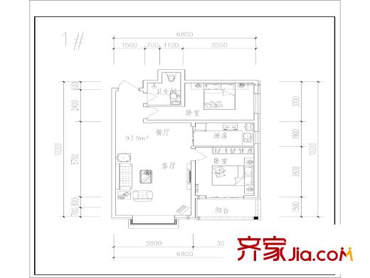 博仕园二期93.90㎡1号楼户型2室2厅1卫