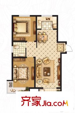 万象国际C户型 2室2厅1卫1厨