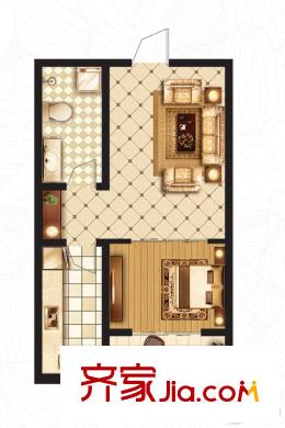 万象国际B户型 1室1厅1卫1厨