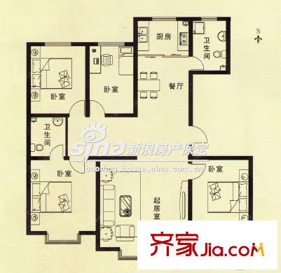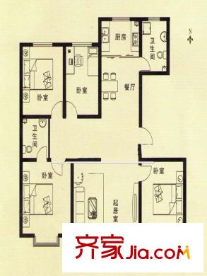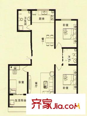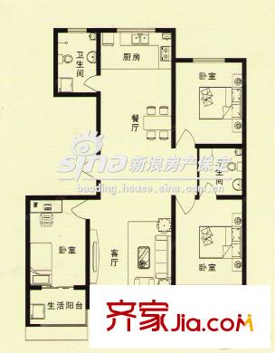 爱琴海花园户型图高层户型 3室2厅2卫1厨