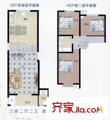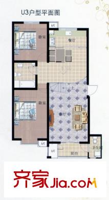 博世花倾城二区户型图高层U2户型 3室2厅2卫1厨