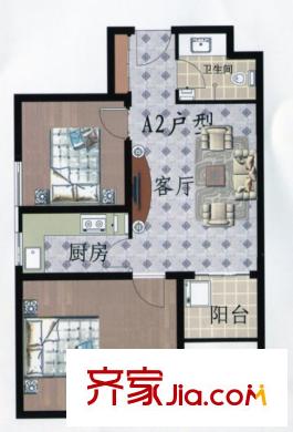 博世花倾城二区户型图A2户型 2室2厅1卫1厨