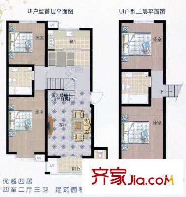 博世花倾城二区户型图高层U1户型 4室2厅3卫1厨
