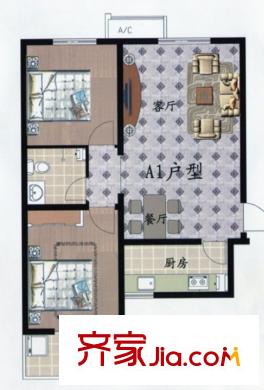 博世花倾城二区户型图A1户型 2室2厅1卫1厨