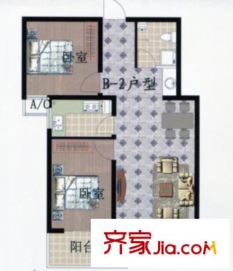 博世花倾城二区户型图B2户 2室2厅1卫1厨