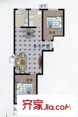 博世花倾城二区户型图B3户型 2室2厅1卫1厨