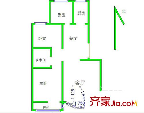 阳光佳苑A区户型图三室两厅 3室2厅1卫1厨