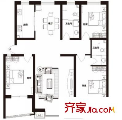 阳光逸景户型图多层户型 3室2厅2卫1厨