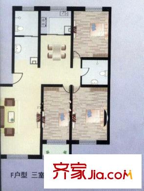 阳光新馨家园户型图F户型 3室2厅2卫1厨