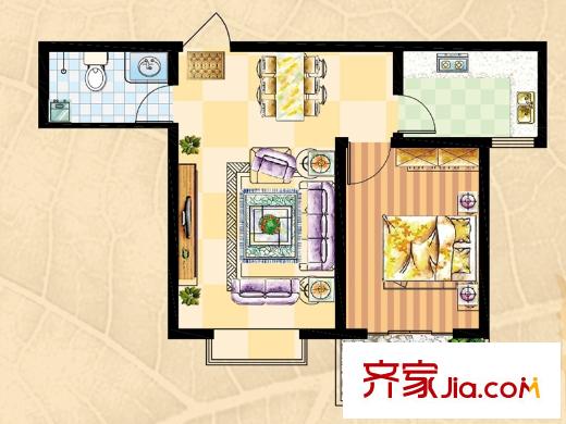 晨巍佳欣二期已售完4号楼A2户型 1室2厅1卫1厨