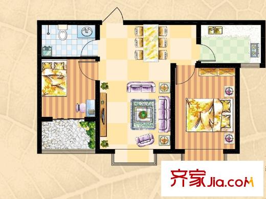 晨巍佳欣二期已售完3B户型 2室2厅1卫1厨