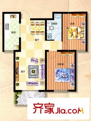 晨巍佳欣二期已售完3C户型 2室2厅1卫1厨
