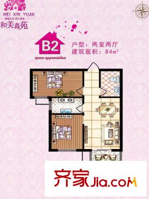 和美鑫苑84.00㎡B2户型2室2厅1卫