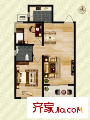 和美鑫苑1-3#B2户型 2室2厅1卫1厨