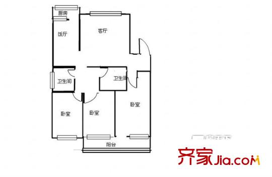 农专小区户型图三室两厅 3室2厅1卫1厨