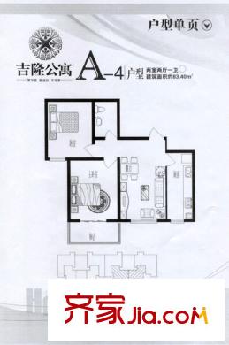 吉隆公寓户型图A-4两室两厅一卫一卫83.4平米 2室2厅1卫1厨