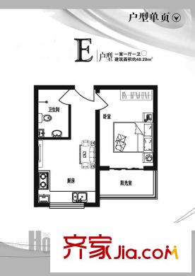 吉隆公寓户型图已售完E户型 1室1厅1卫1厨