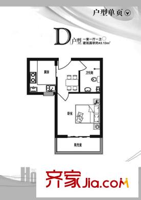 吉隆公寓43.13㎡D一室一厅一卫户型1室1厅1卫