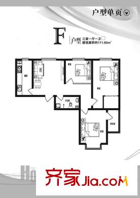 吉隆公寓户型图F户型 3室1厅1卫1厨