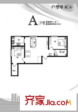 吉隆公寓92.47㎡A两室两厅一卫户型2室2厅1卫