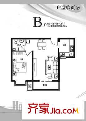 吉隆公寓68.75㎡B一室一厅一卫户型1室1厅1卫