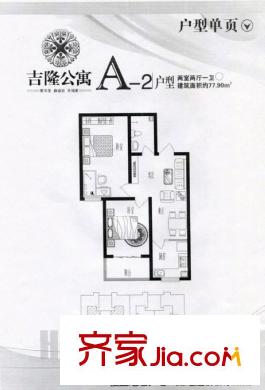 吉隆公寓户型图A-2户型两室两厅一卫一厨77.9 2室2厅1卫1厨