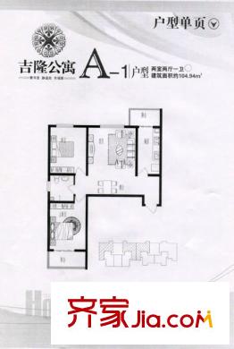 吉隆公寓户型图A-1两室一厅一卫一厨104.94平米 2室1厅1卫1厨