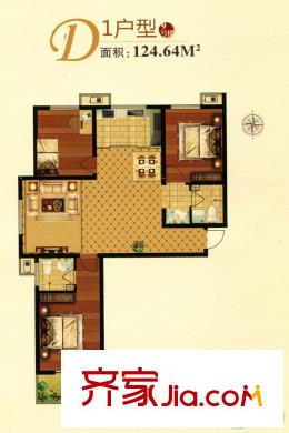 蓝湖郡9号楼D1户型 3室2厅2卫1厨