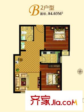 蓝湖郡84.03㎡B2户型两室一厅一卫户型2室1厅1卫