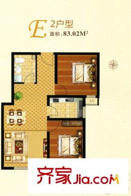 蓝湖郡6号楼E2户型 2室2厅1卫1厨