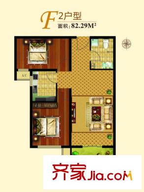 蓝湖郡82.29㎡F2户型两室一厅一卫户型2室1厅1卫