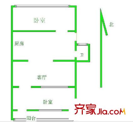 北唐小区户型图两室一厅 2室1厅1卫1厨