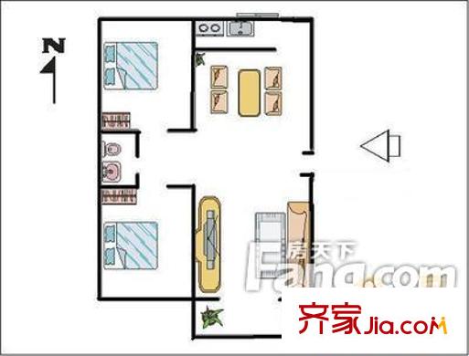 裕丰二期户型图两室两厅 2室2厅1卫1厨