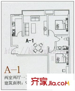 中央峰景户型图中央风景A-1户型 2室2厅1卫1厨