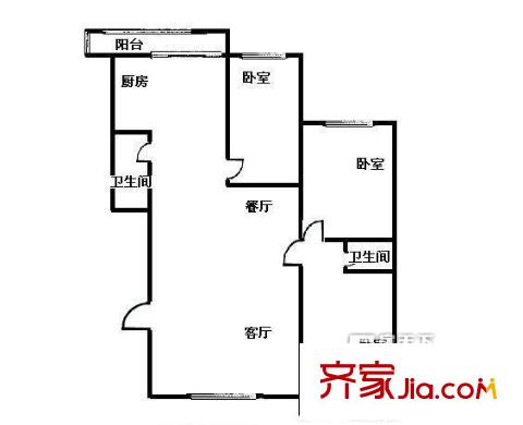 博仕园户型图两室一厅 2室1厅1卫1厨