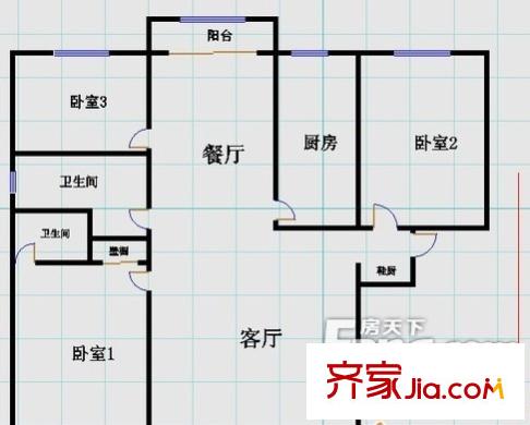 博仕园户型图三室两厅 3室2厅1卫1厨