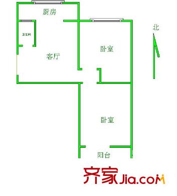 中华小区户型图两室一厅 2室1厅1卫1厨