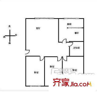 中华小区户型图三室两厅 3室2厅1卫1厨