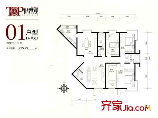 名人国际TOP世界观A单元01户型 4室2厅2卫1厨