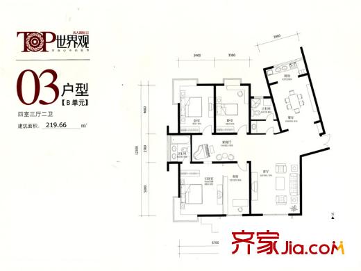 名人国际TOP世界观B单元03户型 4室3厅2卫1厨