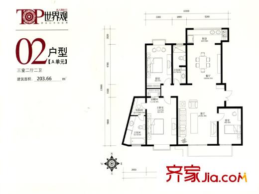 名人国际TOP世界观A单元02户型 3室2厅2卫1厨